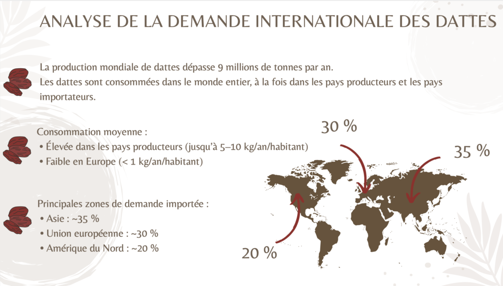 Cette étude de marché analyse le secteur des dattes, en abordant la production, l’importation et la consommation à l’échelle internationale et française.